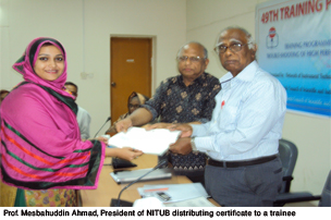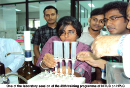 One of the main objective of NITUB is to organize training programmes. Since its inception in July 1994, NITUB has been conducting various training programmes on scientific equipment such as Infra Red, Ultra violet & Visible Spectrophotometers (IR & UV-VIS), Gas Chromatograph (GC), Gas Chromatograph-Mass Spectrometer (GC-MS), High Performance Liquid Chromatograph (HPLC), Atomic Absorption Spectrophotometer (AAS),